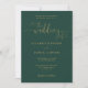 Este convite de casamento em verde esmeralda e dourado com caligrafia em coração pode ser personalizado com suas informações em tipografia sofisticada, com detalhes do site do seu casamento e seu código QR no verso. Projetado por Thisisnotme©