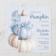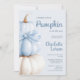 Celebre sua queda com este elegante Convite para Abóbora Azul, Arco Pequeno, com abóboras pintadas à mão empilhadas com um arco macio. O código QR no verso permite um acesso fácil aos detalhes do registro ou evento, adicionando uma reviravolta moderna a uma aparência clássica do outono. Perfeito para mães-a-ser na moda que amam temas confortáveis e sazonais com um toque refinado. Ideal para eventos de outono, outono ou rústicos com uma paleta de cor azul e creme.