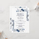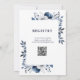 Este convite de chá de noiva floral azul marinho e branco pode ser personalizado com suas informações em tipografia moderna com o código QR do seu registro no verso. Projetado por Thisisnotme©