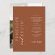 Este convite apresenta uma tipografia moderna que dá uma tipografia serif de bloco simples e limpa, com fundo de terracota. A simplicidade e a design limpa deste convite funciona bem com todos os temas de casamento e definitivamente uma adição excelente ao seu casamento. Tente se tornar ecológico com este convite moderno, tudo em um, ecológico, reduzindo o RSVP adicional e os cartões de detalhes. Basta adicionar seu próprio código QR à parte traseira do convite para seus convidados para RSVP e descobrir mais informações sobre seu casamento. Personalize os nomes e o texto em apenas alguns passos fáceis e personalize o cartão de convite com sua foto do casal feliz para lhe dar um toque exclusivo e pessoal. Se precisar alterar a cor, você pode personalizar o cartão de convite. Você pode personalizar e personalizar o convite para ajustado das suas necessidades de evento de casamento e clicar em personalizar o convite. Você pode personalizar facilmente este convite com seu próprio texto e compartilhá-lo com seus convidados digitalmente — seja através de texto, email ou mídia social. Se preferir, você também tem a opção de enviar uma versão impressa para seus convidados. Ou, você pode fazer ambos — enviar uma versão digital e acompanhar com uma cópia impressa para um toque pessoal!