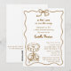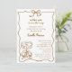 Apresentando o "Tini a Caminho" Convite de Churrasco de Bebê Espresso Martini Desenhado à Mão Divertido e Excêntrico com Código QR – Um convite moderno e divertido para celebrar a futura mamãe! Com uma moldura ondulada e um charmoso laço coquette, este design é acentuado com um espresso martini desenhado à mão no canto inferior. O fundo branco limpo deixa a combinação de letra manuscrita e fontes block divertidas brilhar, criando um clima alegre e elegante. Perfeito para definir o tom de um chá de bebê inesquecível com amigos e familiares. Facilite para os amigos e familiares visualizarem sua lista de presentes atualizando o Código QR no verso do convite. Personalize facilmente este modelo com os detalhes do seu evento. Também disponível como download digital instantâneo para compartilhamento fácil por e-mail, mensagem de texto ou mídia social.