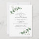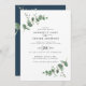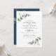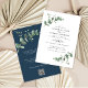 Eucalyptus Greenery foliage coloração aquosa moderna e elegante convite para o casamento do jardim contemporâneo. Simples design botânico contemporâneo. Primavera, outono, outono e cerimônias de casamento mais brancas e verdes, azul marinho, preto e branco elegantes. Com espaço no verso para um código QR para vincular a informações do site.