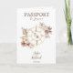 Destino de Casamento de Convite Floral Moderno e Boho, como passaporte. Compasse a crista monográfica na primeira página, com boho beige, marfim e flores rosadas e pampas design Perfect para o seu casamento de praia de verão. Adicionar o código QR do seu site de casamento