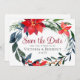 Este lindo feriado Salve a data convite apresenta uma bela aquarela de flores de poinsettia vermelha e folhas de pinho no Natal. Um convite elegante para o inverno com uma coroa floral festiva. Personalize a parte traseira desta placa floral de poinsettia com as iniciais do monograma do casal abaixo do link de código QR para verificar seu site com detalhes do evento.