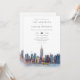 Este convite de casamento elegante em aquarela de Nova York pode ser personalizado com suas informações em tipografia sofisticada com o código QR do seu site de casamento no verso. Projetado por Thisisnotme