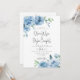 Floral elegante, tudo em um convite de casamento, com flores azuis poeirentas pintadas à mão, flores azuis poeirentas e verde, roteiro de caligrafia moderno com detalhes e código QR RSVP no verso. Um belo casamento floral azul e empoeirado, tudo num único convite. Você pode personalizar o texto, a fonte, a cor e o tamanho em frente e atrás do convite. Por favor, sinta-se à vontade para contactar-me para obter papelaria correspondente.