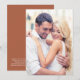Aumente o seu convite para o casamento de véu ou salve as sobreposições de data com o nosso cartão de fundo de terracotta com a sua foto na frente. No verso, insira o endereço do seu site de casamento para criar um código QR para seus convidados digitalizarem para RSVP on-line e obter detalhes adicionais de casamento, como acomodações.
