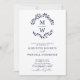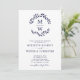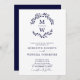 Todos em um Marinho Clássico RSVP de Código QR Convite de Casamento de Terra Botânica de Monograma Azul Monograma.. A frente do nosso convite de casamento minimalista apresenta uma coroa azul azul de folha marinho mostrando as iniciais do monograma da noiva e do noivo acima do texto do convite personalizado em serif marinho e sans serif tipografia num fundo branco nítido. O clássico marinho azul do convite exibe o código QR do seu site de casamento, bem como o próprio URL do site, permitindo que seus convidados facilmente RSVP on-line e visualizem todos os detalhes normalmente enviados em um pacote de casamento. O exemplo de código QR e todo texto de exemplo podem ser facilmente revisados com suas próprias informações sobre o modelo de personalização.