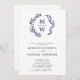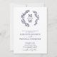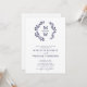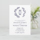 Todos em um Marinho Clássico RSVP de Código QR Convite de Casamento de Terra Botânica de Monograma Azul Monograma.. A frente do nosso convite de casamento minimalista apresenta uma coroa azul azul de folha marinho mostrando as iniciais do monograma da noiva e do noivo acima do texto do convite personalizado em serif marinho e sans serif tipografia num fundo branco nítido. A parte traseira do convite exibe o código QR do seu site de casamento, bem como o próprio URL do site, permitindo que seus convidados facilmente RSVP on-line e visualizem todos os detalhes normalmente enviados em um pacote de casamento. O exemplo de código QR e todo texto de exemplo podem ser facilmente revisados com suas próprias informações sobre o modelo de personalização.