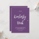 A elegante tenda, escrita à mão, escreve nomes de noiva e guião nobre, tudo informal em um convite de casamento com a digitalização do código QR para o website em simples lavanda branca e roxa. ++++++++++++++++++++++ Você pode alterar as cores do texto e do plano de fundo após selecionar a opção PERSONALIZAR mais. ++++++++ O convite é adequado para cerimônias e recepções de casamento informais de estilo moderno.