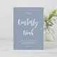 A tenda elegante escreveu nomes de noiva e guião nobre, tudo informal em um convite de casamento com a digitalização do código QR para o site em branco simples e azul empoeirado. ++++++++++++++++++++++ Você pode alterar as cores do texto e do plano de fundo após selecionar a opção PERSONALIZAR mais. ++++++++ O convite é adequado para cerimônias e recepções de casamento informais de estilo moderno.