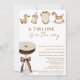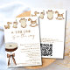 Um Tini está a Caminho Convite de Chá de Bebê Espresso Martini com Código QR - Um convite de chá de bebê único e adorável com um espresso martini adornado com um laço coquete marrom moca e itens de bebê, uma mamadeira, cavalo de balanço, body de bebê, e patinho de brinquedo vintage, todas ilustrações em aquarela. Fonte de letra manuscrita elegante ao lado de fonte de letra bloco elegante em tom marrom. Edite este modelo de convite de chá de bebê com os detalhes do seu evento. Perfeito para chás de bebê de primavera, verão ou outono. Para futuros pais ou mães que procuram algo diferente e único. Disponível em impressão e download digital, perfeito para enviar via mensagem de texto, e-mail ou redes sociais. Facilite o acesso dos seus convidados ao site da sua lista de presentes adicionando o Código QR no verso do