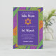 Destaque-se com este convite de Bat Mitzvah retrô único e divertido. Ele apresenta um design de fundo roxo, verde e laranja que você pode levar para o resto do seu evento. Desde decorações de festa até decoração de mesa, suas escolhas são infinitas. Sua filha ficará emocionada com este convite divertido e emocionante para o seu dia especial.