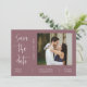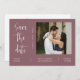 Este convite para salvar a data apresenta caligrafia elegante e letra simples da tipografia sans serif com uma fotografia num fundo roxo empoeirado e um código QR para um olhar minimalista e moderno limpo, que é uma bela forma de informar sobre o seu próximo casamento. Anuncie à sua família e amigos que vai se casar com este convite e adicione um toque pessoal com belas fotos de você e sua próxima metade melhor. A simplicidade desta design adiciona um toque de elegância ao seu casamento. Funciona bem com muitos temas de casamento e definitivamente um excelente extra para o seu casamento. Basta personalizar os nomes e o texto em alguns passos fáceis e personalizar o cartão de convite com sua foto do casal feliz e substituir o Código QR pelo seu. Por favor, note: a elegante caligrafia dos termos "Salvar a Data" e "Toda história de amor é bonita, mas nossa é a nossa favorita", assim como as linhas e outros trabalho de arte gráficos e elementos não podem ser editados, apagados ou movidos. Eles estão consertados. Se precisar alterar a cor, você pode personalizar o cartão de convite. Você pode personalizar e personalizar o convite para ajustado das suas necessidades de evento de casamento e clicar em personalizar o convite. Você pode personalizar facilmente o convite com o texto como um download digital e enviá-lo eletronicamente e compartilhá-lo com seus convidados através de mensagem de texto, email ou mídia social. Ou também pode optar por enviar/postar o convite relativo aos seus detalhes aos seus convidados. Ou você pode receber ambos — convite impresso e receber o convite em formato digital como um download instantâneo.