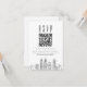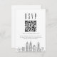 Um cartão de código QR rsvp de casamento com uma lindíssima linha do horizonte estilizada representando a cidade de Filadélfia, Pensilvânia. Substitua o código QR por um que apresente um link para o seu site para ajudar a facilitar a resposta ao evento de seu casamento para seus futuros convidados.