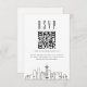 Um cartão de código de QR rsvp de casamento com uma lindíssima linha estilizada representando a cidade de Seattle. Substitua o código QR por um que apresente um link para o seu site para ajudar a facilitar a resposta ao evento de seu casamento para seus futuros convidados.