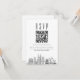 Um cartão de código de QR rsvp de casamento com uma bela linha estilizada representando a cidade de Nashville. Substitua o código QR por um que apresente um link para o seu site para ajudar a facilitar a resposta ao evento de seu casamento para seus futuros convidados.