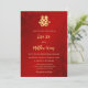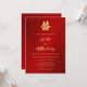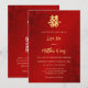 Este elegante convite para o casamento chinês mostra um símbolo de dupla felicidade de ouro artístico em um fundo floral vermelho de shimmering. Nomes de noiva e noivo em um elegante roteiro escrito à mão. Convite para casamento chinês ou convite para cerimônia de chá. Com um código qr digitalizável na parte de trás.