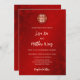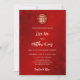 Este convite tradicional para o casamento chinês apresenta um símbolo de felicidade dupla dourada num fundo floral vermelho de shimmering vermelho. O elegante guião manuscrito dá ao design um toque moderno. Você pode facilmente mudar a linha, que diz: "convide você para a cerimônia de casamento" para "cerimônia de chá". O convite tem um código qr digitalizável na parte de trás do seu site de casamento.