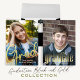 Este design apresenta um formando de graduação em preto-ouro, com classe de ano do formando, com mínimo moderno e mínimo moderno, uma fonte de tipografia de blocos de tendência na moda, com dois modelo de dois quadros, para mais velho de segundo grau ou faculdade, com mídia social de código QR, com cobertura de texto de vellum, com design moderno simplista, um efeito de gradação de ouro e preto