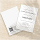 Código QR Simples Preto e Branco de Qualquer Cor Casamento. Um design tipográfico minimalista totalmente personalizável. A cor e o tipo de letra podem ser alterados através do menu de edição. Você também pode alterar as cores do texto e do fundo em ambos os lados, se desejar. Adicione seu código QR ao site do seu casamento no verso como uma opção conveniente para seus convidados responderem. Simplesmente altere a URL de exemplo para a sua e seu código será gerado automaticamente.