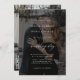 Sobreposição negra mínima elegante, tudo em um modelo de convite para casamento, com um script clássico de caligrafia na moda e seu CÓDIGO QR de varredura gerado automaticamente para RSVP on-line. ++++++++++++ Fácil de personalizar com seus detalhes, foto e código de digitalização! O convite é adequado para casamentos formais modernos.