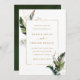 Este convite para casamento "tudo em um" apresenta folhagem tropical verde-aquarela, folha de palmeiras, folha de bananeira com folhas de ouro falsas, e os detalhes e um link de código QR no verso. É perfeito para uma praia, verão, Havaí ou casamento de destino. >>> Veja a coleção inteira >> https://www.zazzle.com/collections/tropical_foliage_gold_collection-119316977990783186