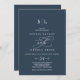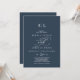 Este código de QR azul escuro moderno tudo em um convite de casamento da Coleção Sophia é perfeito para um casamento simples. O clássico design moderno apresenta espirais ricos e turbilhões brancos com magnífica e elegante tipografia à mão. Salve o papel, incluindo um código QR para seu convidado para ver detalhes, RSVP ou ambos.