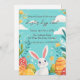Convite Coelhinho bonito com flores de ovos Caça de Ovo de