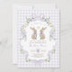 Convite Coelhinho de Laço Roxo Chás de Bebê Gêmeos