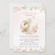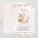 Convide amigos e familiares com estilo e defina o tom do seu dia especial com este encantador convite de chá de bebê. O design apresenta coelhinho fofo, borboleta rosa, flores de aquarela rosa e folhagens em fundo rosa pálido.