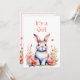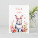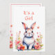 Um coelhinho doce rodeado por flores cor-de-rosa e coral ilustração aquosa convites para um chá de bebê para uma garotinha.