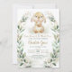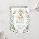 Este convite de chá de bebê elegante apresenta um adorável coelho bebê emoldurado com uma linda grinalda de verde à aguarela