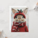 Uma encantadora ilustração de inverno de um adorável coelho vestido com um casaco vermelho aconchegante, cachecol combinando e chapéu de tricô adornado com azevinho e frutas vermelhas. Os grandes olhos cintilantes do coelho adicionam um toque de capricho, capturando a alegria e o calor da temporada de festas. Rodeado por neve caindo suavemente, essa cena deliciosa incorpora a magia do inverno, tornando-a perfeita para saudações festivas ou decoração sazonal.
