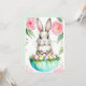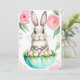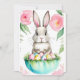 Convite personalizado para o brunch de férias da Páscoa. Verde fresco da primavera, rosa suave e toque de mar de verdes e cores brancas, coelho da Páscoa fofo com cesto de ovos da primavera. Por favor, entre em contato comigo se desejar aplicar este design em outros produtos