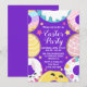 Celebre a Páscoa com este convite de festa divertido que apresenta donuts decorados com cores pastéis, um coelho e um pintinho alegres, e um fundo roxo festivo salpicado de estrelas. O layout circular e a paleta de cores suaves de primavera criam um clima alegre e acolhedor perfeito para reuniões sazonais. Ideal para festas de Páscoa, aniversários de primavera ou celebrações temáticas, este design combina o capricho açucarado com o charme do feriado.