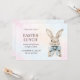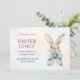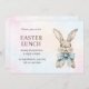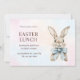Entre no espírito das festas com este convite encantador para almoço de Páscoa, apresentando um adorável coelho usando uma coroa floral contra um fundo pastel suave. Perfeito para reunir familiares e amigos para celebrar a estação, este convite lindamente desenhado define o tom para um almoço de Páscoa delicioso e memorável.