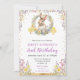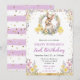 Elegante Coelho da Primavera de Aquarela e design de flores silvestres com confete de brilho dourado com fundo de faixas roxas