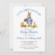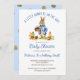 Peter Coelho com bolotas outono chá de fraldas convite para modelo convite para download digital instantâneo. Um belo coelho numa jaqueta azul com bolota de bolota e folhas de carvalho para um chá de fraldas bebê