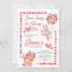 Coelho rosa bonito Gilr Convite de aniversário Bonito trabalho de arte de coelhinho com um buquê de rosas cor-de-rosa e Coração é apresentado neste convite de aniversário de coelho. A formulação é bastante adequada. Clique no botão "Clique para modificar" para alterar instantaneamente as cores do estilo de fonte ou do modo de texto.
