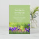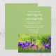 Personalize este convite de Páscoa com o seu texto. Escolha uma fonte e a cor do texto que complementem a sua festa de feriado. Este adorável convite de Páscoa apresenta um fundo verde primavera com íris roxas e coelhos abaixo do texto.