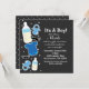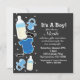 Convite de Coisas de Baby Shower Menino Azul e Cinza Moderno.
