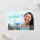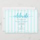 "Vamos todos celebrar o formando." Tenha orgulho, alegria e mostre este marco do seu formando favorito! Enviar este espantoso, moderno, cintilante roteiro de tipografia azul-turquesa contra um fundo azul-turquesa e branco listrado com pontos de turquesa e dourado, convite personalizado para a colagem de fotografias para um evento a recordar. Personalize o texto personalizado com o nome do seu formando, ano escolar e ano de aula. O texto do convite do local do evento está no verso. Garantido para adicionar diversão na moda à sua ocasião especial! Na frente, digite o nome do seu formando, ano escolar e de aula, adicione-lhe três fotos, e você pode personalizar facilmente este convite de formatura. As informações personalizadas da parte traseira deste cartão. Por favor, me mande mensagens com quaisquer perguntas ou solicitações.
