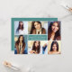Anuncie seu formando em estilo mostrando suas fotos de mais velho favoritas neste design de placa de colagem de fotos. Personalize o texto no verso do cartão para convidar a família e os amigos para uma festa de formatura para celebrar a ocasião. A cor azul verde azul de fundo pode ser personalizada para corresponder às cores da escola ou da foto.
