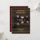 Este é um convite de reunião de família exclusivo em colagem de fotos. Ele apresenta um design rústico de uma árvore com campos de modelo para texto de convite e suas próprias fotos de família. Tema de xadrez de búfalo e madeira rústica.