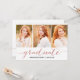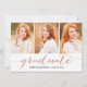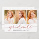 Cartão com fotos de colagem de script manuscrito convidando sua família e amigos para a festa de formatura de sua filha. Fundo branco do script de folha rosa dourada Faux. Design de Elke Clarke. Visite nosso compro www.zazzle.com/monogramgallery* para mais designs e estilos. Adicione suas próprias fotos e texto.