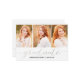 Cartão com fotos de colagem de script manuscrito convidando sua família e amigos para a festa de formatura de sua filha. Escrito branco de folha prateada falsa. Design de Elke Clarke. Visite nosso compro www.zazzle.com/monogramgallery* para mais designs e estilos. Adicione suas próprias fotos e texto.