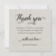 Adicione quatro fotos e inicial monogramada na frente do cartão de agradecimento elegante com coroa e efeito de linho no fundo. No verso, "Obrigado" é escrito em uma caligrafia preta elegante e espiralada acima de uma mensagem pessoal para os convidados do seu casamento que pode ser personalizada. Além disso, "com todo o nosso amor" está na mesma caligrafia; adicione seus nomes abaixo.