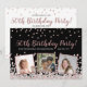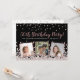 Convite de aniversário personalizado e elegante com design de confetes rose gold e prata sobre fundo preto, tipografia moderna com as palavras "Festa de 50º Aniversário" (em rose gold), seu nome e data de nascimento (em prata) e três de suas fotos favoritas emolduradas em folha metálica rose gold. Personalize com os detalhes da sua festa no verso do convite.
