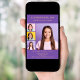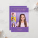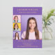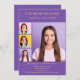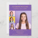 Crie sua própria colagem de fotos exclusiva. Use quatro, quatro das suas fotos favoritas. Personalize e adicione um nome e detalhes da parte. Cor de fundo roxa.